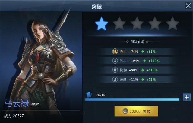 当英雄达到一定等级时,能进行突破,突破后增加兵力,防御和攻击