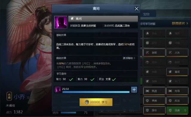 学习方式对英雄的四围属性(武力、智力、魅力、统帅)或英雄标签(文官、英雄、所有部才、性别)以及英雄兵种(步兵、骑兵、弓兵、弩兵)有要求;