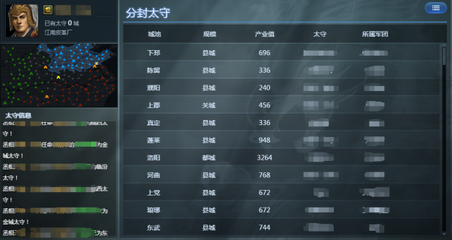对于本国曾经占领的城池,国王拥有城池太守的分封权利,获封的太守能够够以开始城池增益,提高一定期间内该城池的建设效率,同时,太守所正在城池的银两和粮草税收即被归太守所在军团全部。