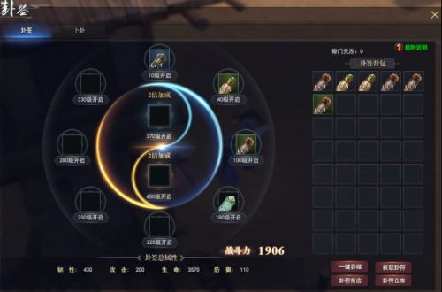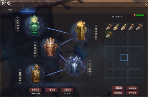 卦签卜卦 走南闯北,趋吉避害逢凶化吉可谓非常关键 玩家达到一定等级能够开始卦签体系,装备不同属性卦签能对相应属性进行加成。 玩家能正在卜卦界面消耗银两进行卜卦获得卦签,能通过吞噬其他卦签对卦签进行升级,可今日卦签商店打开低品质卦签兑换高品质卦签。