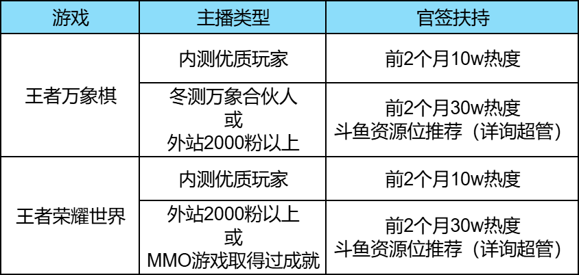王者荣耀世界 主播扶持政策