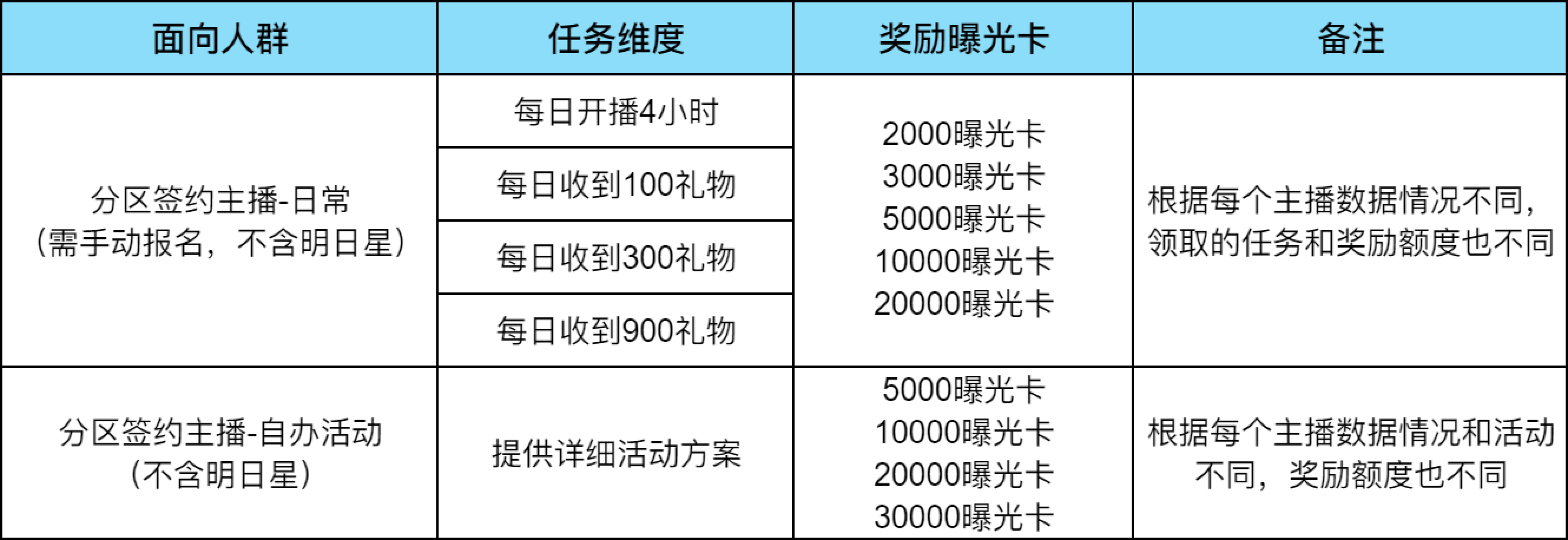 每位主播任务不同,完毕当日任务后曝光卡会自动下发到背包,每日的奖励数量有限,先到先得。