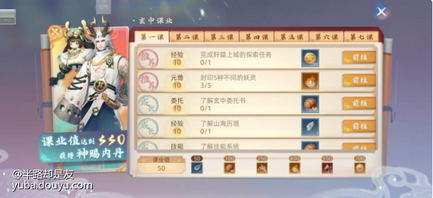 玄中课业中共分为七课,每一课中都包含不同种类的任务,有休闲任务,了解游戏中的休闲玩法;成长人物,了解游戏中的基本设定与玩法;探索任务,探索不同的区域和元兽。实现相应的任务就能获得奖励与课业值,课业值越高,还能获得额外的奖励~划重点,课业值达到550,就能获得神赐内丹——麒。没有等级限制,不需要强大的实力,就能获得妖神麒麟,这种好事怎么能不和大家一起分享呢?
