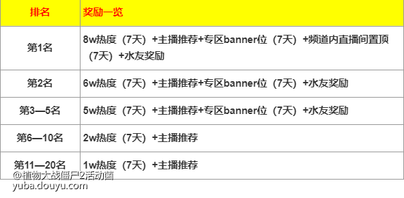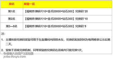 活动时候,在【植物大战僵尸2】手游专区着手直播,直播时长≥5小时能够登录主播周榜排名,排名奖励如下: