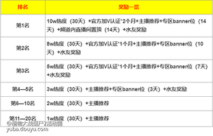 ① 月榜排名前20的主播可获得以下奖励: