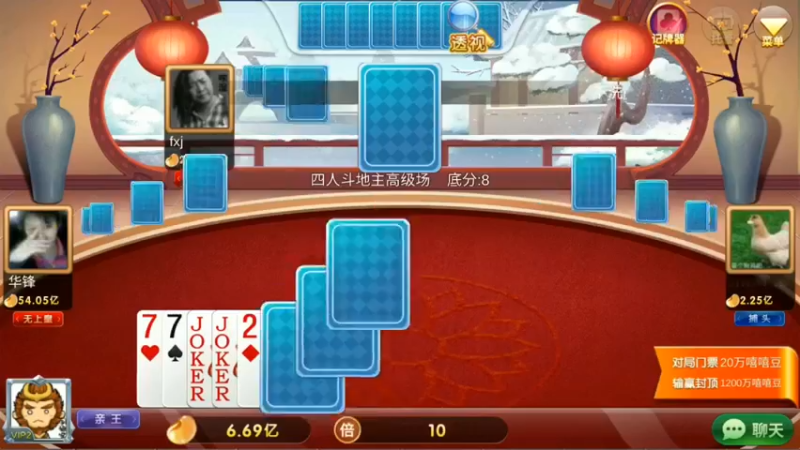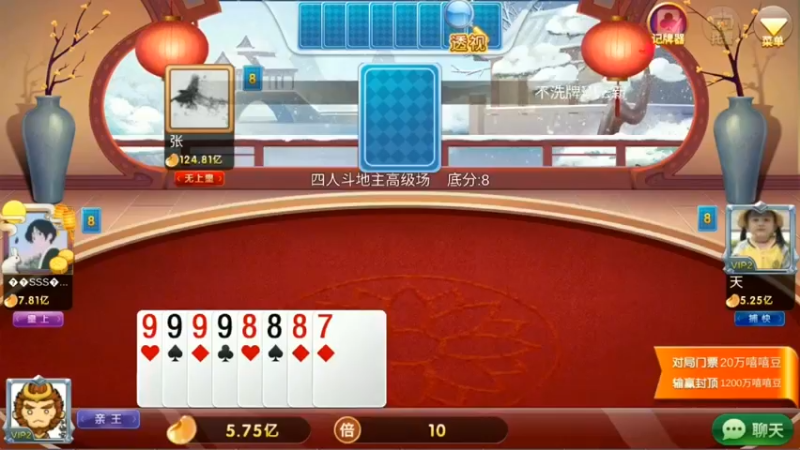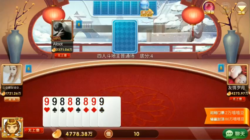 88. 对家2222222 AAAAAAAA加倍结果他1张牌都没出,下家还翻倍送豆子