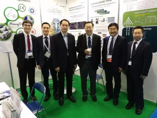 我国肺癌临床知名专家,上海交通大学附属胸科医院肺内科主任韩宝惠,中山大学肿瘤防治中心教授、主任医师张力,中国医学科学院肿瘤医院内科主任李峻岭莅临艾德生物展台