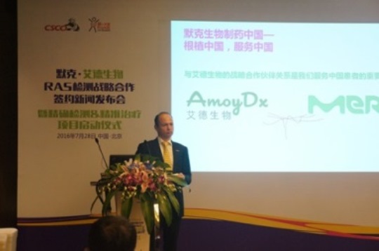 中国北京,2016年7月28日,总部位于厦门的肿瘤精准检测领域优势企业艾德生物与全球先进的科技公司默克共同宣布签署了一项新的合作协议,启动艾德生物-默克“精确检测,精准治疗”结直肠癌RAS检测项目。该项目将致力于结直肠癌检测中新型RAS液体活检在全球的开发和推广,以及肿瘤组织RAS检测在中国大陆的推广,为结直肠癌患者提供绝佳的、及时的个体化诊疗方案,改善治疗现状,使患者获得更多治疗和生存获益。“精确检测,精准治疗”项目中所应用的新型RAS液体活检将采用计划于2017年进入中国市场的艾德生物ADx-SuperARMS®技术。